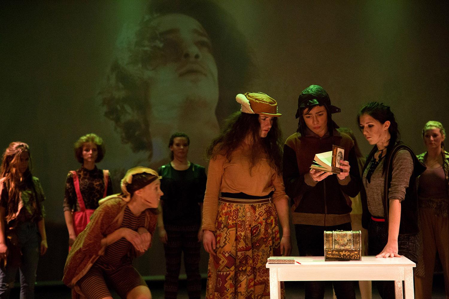 Sodelovali_e dijaki_nje 3.G programa umetniška gimnazija, dramsko-gledališka smer: Tina Resman, Ivana Aleksić, Barbara Žefran, Karin Markovič, Monika Novak, Živa Bizovičar, Lara Zebič, Monika Novak, Lucija Žerovnik, Leon Bedjanič, Ana Ule, Blaž Andrašek, Veronika Železnik, Hana Vrtovec, Tina Černuta, Tadeja Peternel in Anja Jug.