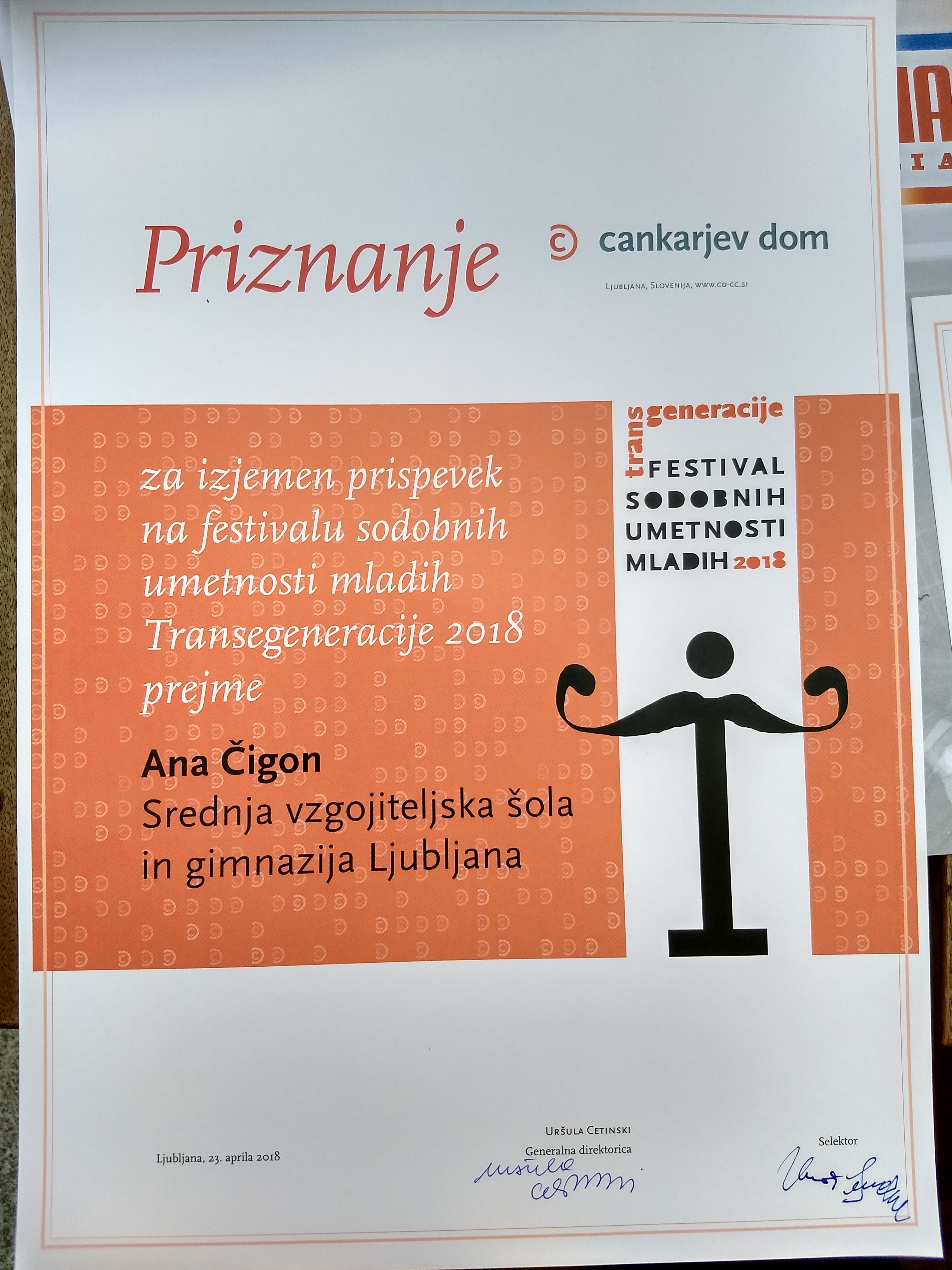 Četitamo dijakinjam Rebeka Satler, Megi Oblak, Zala Kantužar, ki so za svoj film Black and White prejele posebno omembo.